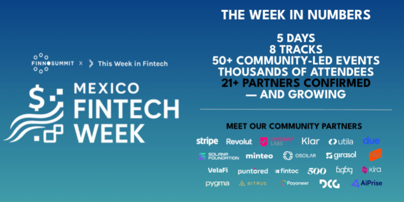 La México Fintech Week es una iniciativa organizada por This Week in Fintech y Finnovista que transforma la Ciudad de México durante toda una semana en un hub de innovación financiera. Próximamente | Feb 23 – 27, 2026